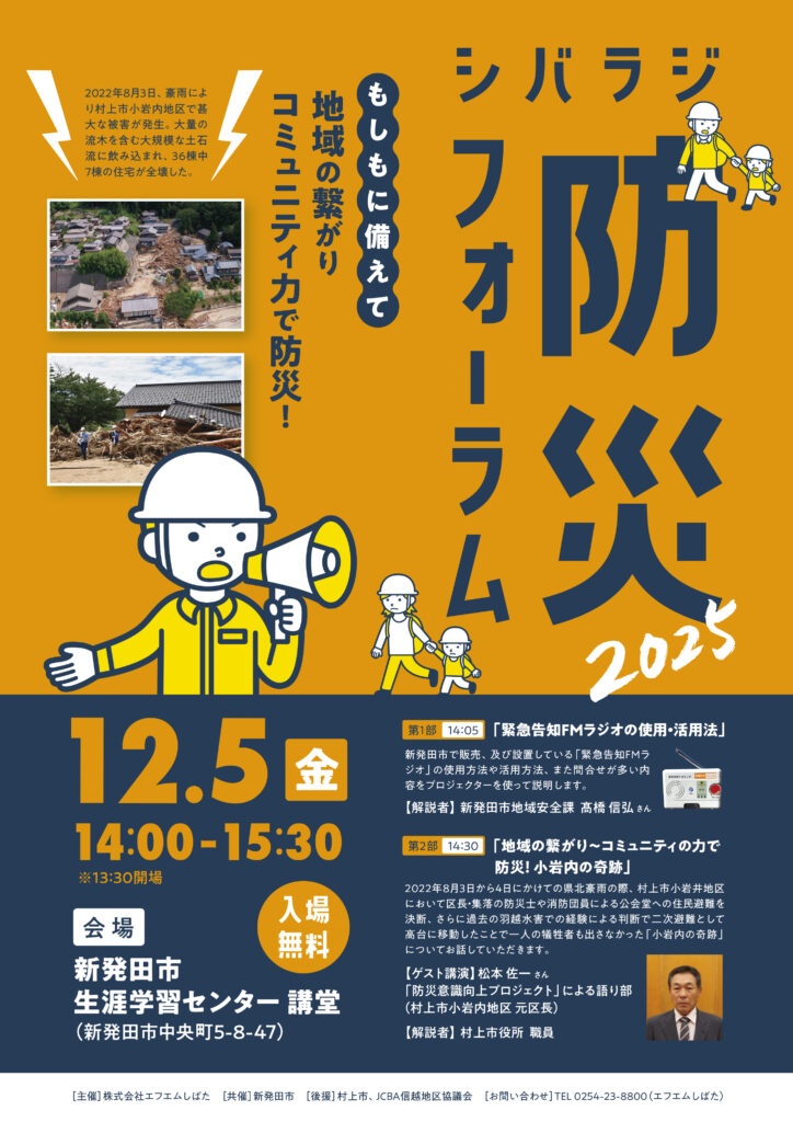 エフエムしばたでは「防災フォーラム2025」を開催します。